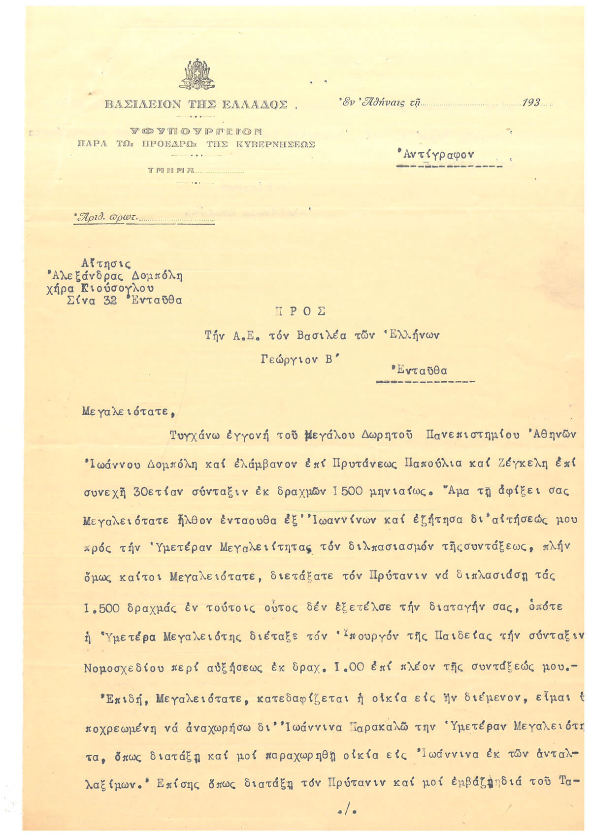 (Ιστορικό Αρχείο Εθνικού και Καποδιστριακού Πανεπιστημίου Αθηνών)